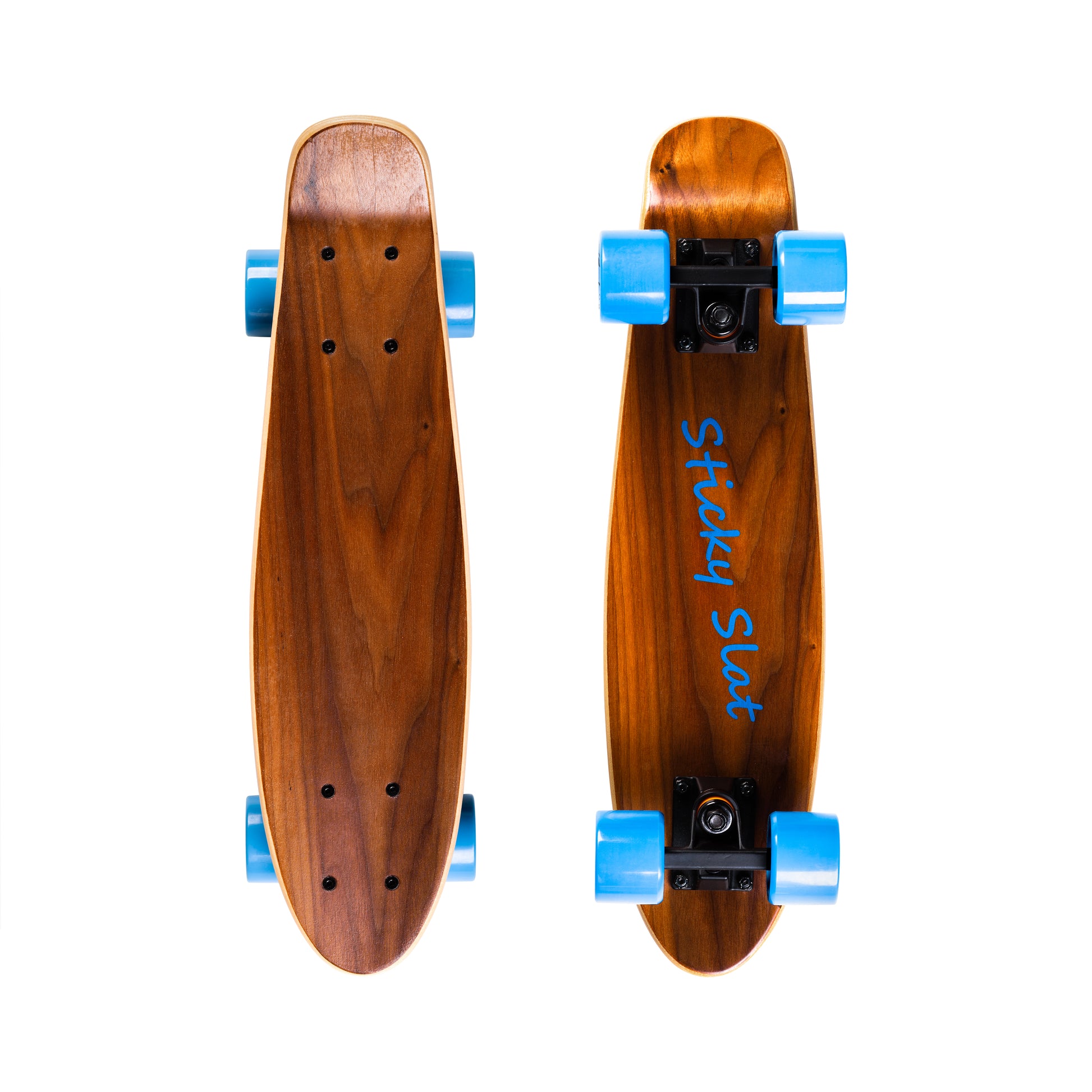 Handcrafted deck (Clear grip coating for traction - no grip tape, full wood design visible)